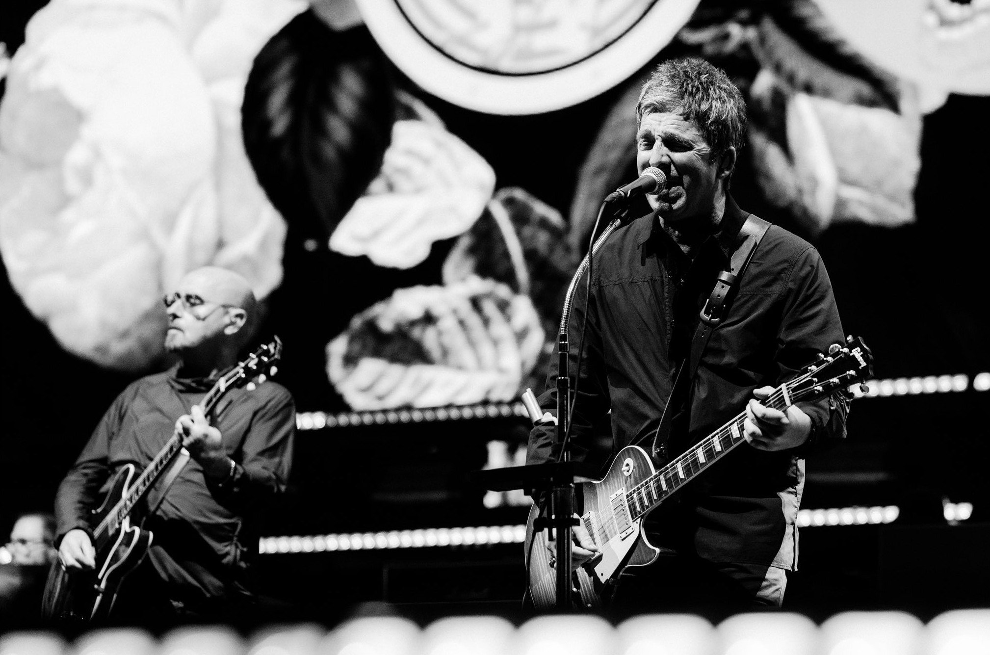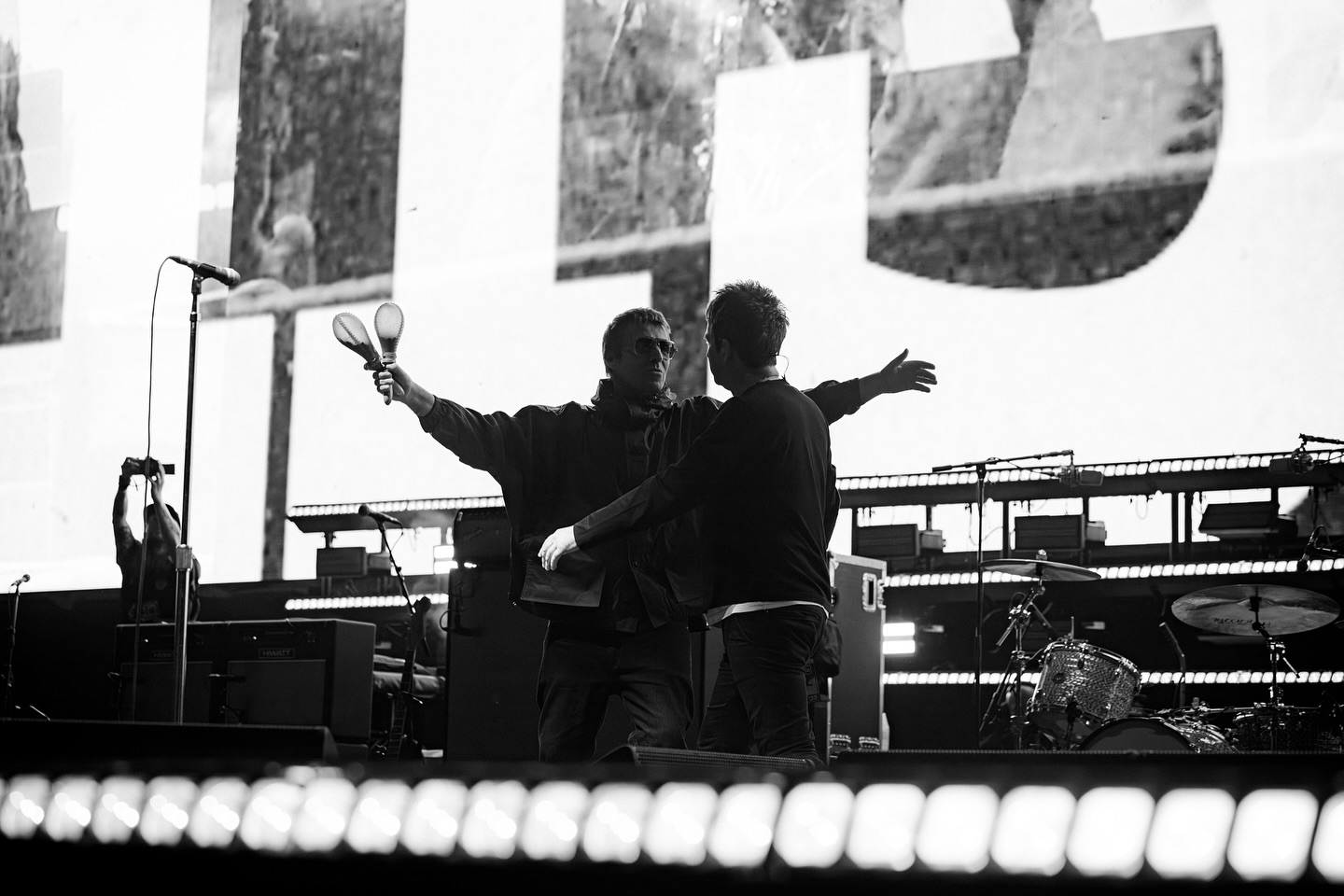 Noel Gallagher y Bonhead frente a 65 mil personas en la segunda noche de la presentación de Oasis en el Estadio GNP Seguros de CDMX. Fuente. Noel Gallagher Cuenta oficial en Facebook.